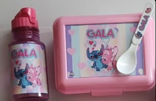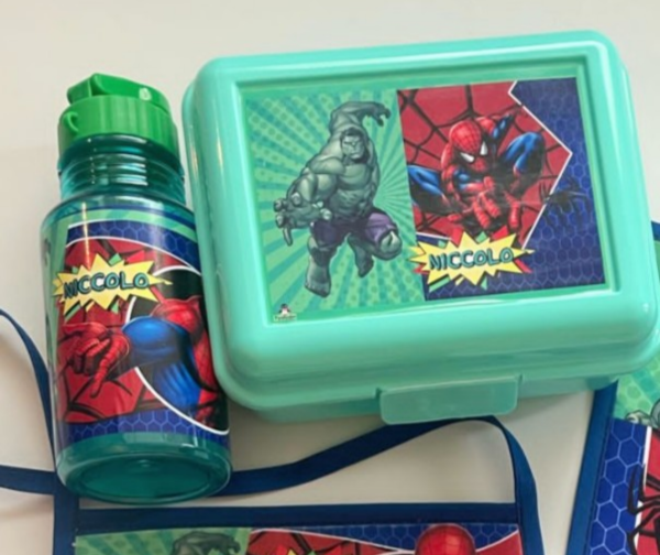 Set the lonchera de 14*16*8 cm+ botella de 400 cc. Personalizada con vinilo lavable todas las temáticas y personajes a ELECCIÓN.